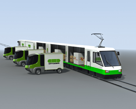 L’expérience est déjà menée dans certains villes européennes. A Zürich , depuis 2003, un tram-cargo circule sur le réseau. Il s’agit d’un projet municipal pour évacuer les déchets encombrants ainsi que certains autres types de déchets. A Dresde, Volkswagen livre en grande quantité au moyen du tram des pièces détachées pour le montage. A Vienne, le «Güter-Bim» effectue régulièrement des transports internes de marchandises sur les lignes urbaines.