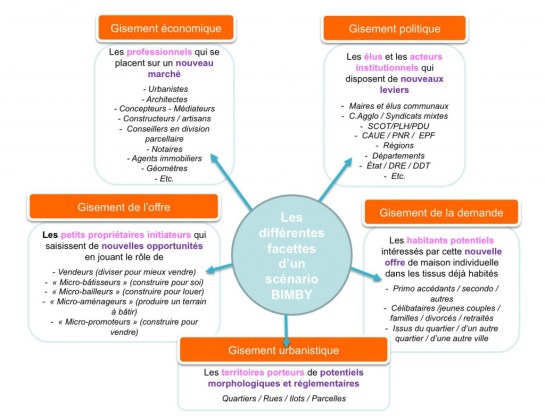 « Un scénario de la filière BIMBY procède à la division d’un terrain déjà bâti en 2 parties dans l’optique de construire une nouvelle maison individuelle, dans le cadre des possibilités définies par le PLU ou le POS local ».