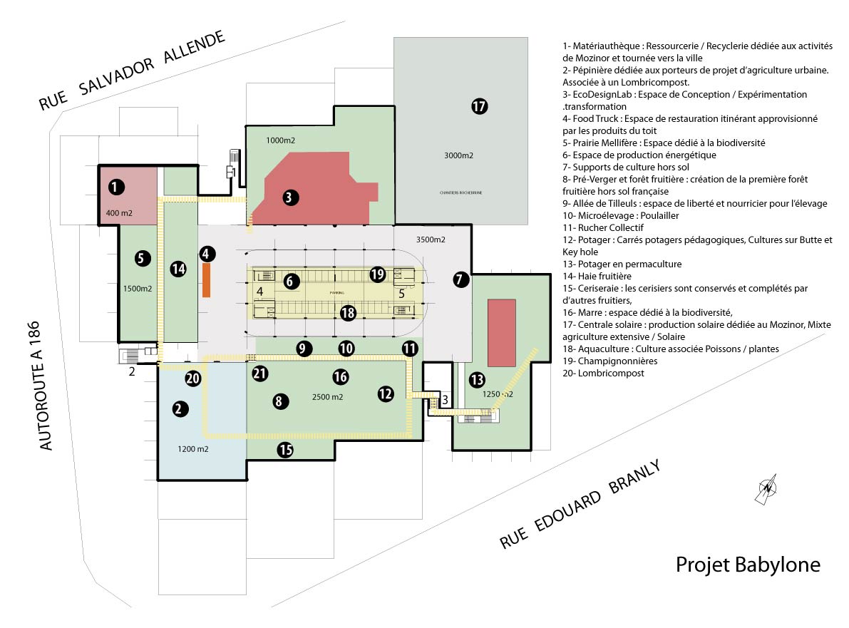 L’objectif du Collectif Babylone est de créer un lieu d’expérimentation et transformation où Fab Lab, Gestion des déchets (et matériaux) et Agriculture Urbaine (à travers le Lab’AU : Laboratoire d’Agriculture urbaine) entrent en synergie et optimisent le métabolisme urbain.