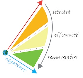 Les 3 mots de l’assocaition negaWatt : sobriété, efficacité, renouvelables